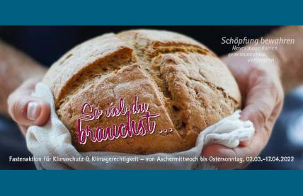 Karlsruhe, (16.02.2022). Zwei Fastenaktionen laden von 2. März (Aschermittwoch) bis 17. April (Ostersonntag) zum Mitmachen ein: Die aktuelle Fastenaktion der evangelischen Kirche „7 Wochen Ohne“ steht unter dem Motto „Üben! Sieben Wochen ohne Stillstand“. Die ökumenische Fastenaktion für Klimaschutz und Klimagerechtigkeit widmet sich 2022 dem Thema Ernährung.