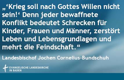 Stuttgart/Karlsruhe, (16.02.2022). Angesichts der Eskalation der Kriegsvorbereitungen an der Grenze zwischen Russland, Weißrussland und der Ukraine setzen sich die Evangelischen Landeskirchen in Baden und Württemberg für eine diplomatische Lösung ein, die nachhaltig für alle beteiligten Konfliktparteien den Frieden in Europa stabilisiert, und rufen die Gemeinden zu Friedensgebeten auf.