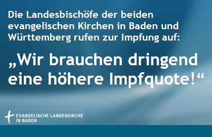 Karlsruhe/Stuttgart, (25.11.2021). Die Landesbischöfe der beiden evangelischen Kirchen in Baden und Württemberg, Jochen Cornelius-Bundschuh und Frank Otfried July, rufen gemeinsam dazu auf, sich impfen zu lassen: „Die Dramatik der vierten Welle zeigt, dass wir dringend eine höhere Impfquote brauchen. So können wir die besonders verletzlichen Gruppen in unserer Gesellschaft wirksam schützen: Menschen mit Vorerkrankungen, Ältere und Kinder, für die es bisher noch keine Impfempfehlung gibt. So können wir die entlasten, die jetzt seit fast zwei Jahren in ihrem Dienst in Kliniken und Heimen an der Grenze ihrer Möglichkeiten arbeiten. Nur so können wir verhindern, dass viele Menschen vor Angst immer mehr in Einsamkeit und Depression geraten. Deshalb bitten wir: Lassen Sie sich impfen!“