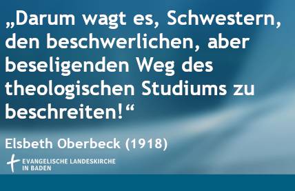 Karlsruhe, (19.08.2021). Sie studierte Theologie und legte als erste Frau in Deutschland das Examen ab: Doch das Pfarramt bliebt Elsbeth Oberbeck verwehrt. Zeitlebens blieb sie ohne Titel und Talar. Vor 150 Jahren wurde sie geboren.