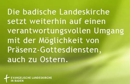 Karlsruhe (23.03.2021). Die badische Landeskirche setzt weiterhin auf einen verantwortungsvollen Umgang mit der Möglichkeit von Präsenz-Gottesdiensten, auch zu Ostern.