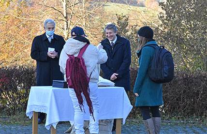 Mosbach, (18.11.2020). Zum Buß- und Bettag (18. November) hat Landesbischof Jochen Cornelius-Bundschuh Christinnen und Christen aufgerufen, sich für Gerechtigkeit einzusetzen, „wenn wieder sortiert wird in die, die dazu gehören, und die anderen“. Niemand dürfe entwürdigt werden, weil er bestimmte Erwartungen nicht erfülle. Das gelte damals wie heute, für Menschen mit Behinderung wie für Flüchtlinge. Im Mittelpunkt des Gottesdienstes in der Johannes-Diakonie in Mosbach stand die Erinnerung an die zwischen 1940 und 1944 ermordeten Opfer der NS-„Euthanasie“, darunter die damals 29jährige Maria Zeitler. Künftig sollen der Maria-Zeitler-Platz und ein gleichnamiger Pfad das Leben und Schicksal der 263 ermordeten geistig behinderten Bewohnerinnen und Bewohner der Johannes-Diakonie greifbar machen.