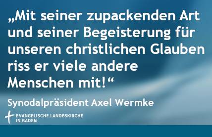 Karlsruhe, (23.10.2020). Die Landessynode der badischen Landeskirche trauert um den verstorbenen Altbischof Ulrich Fischer. „Mit seiner zupackenden Art und seiner Begeisterung für unseren christlichen Glauben riss er viele andere Menschen mit“, würdigte Synodalpräsident Axel Wermke den am Mittwochabend (21.10.) Verstorbenen. Auch die frühere Synodalpräsidentin Margit Fleckenstein äußerte ihre Trauer um Ulrich Fischer als einen „immer freundlichen, offenen Menschen, der sich mit ganzer Kraft seinen Aufgaben in unserer Landeskirche und in der Evangelischen Kirche in Deutschland widmete“.