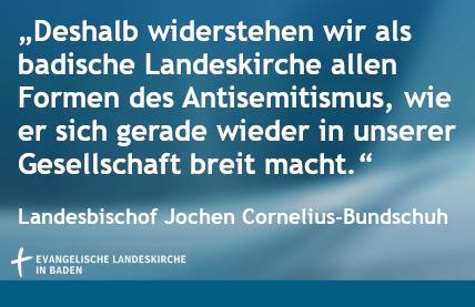 Karlsruhe, (07.11.2020). In Erinnerung an die Reichspogromnacht am 9. November 1938 hat der badische Landesbischof, Jochen Cornelius-Bundschuh betont, dass evangelische und jüdische Gemeinden „unauflöslich“ verbunden seien. Es sei ein langer Weg gewesen, „bis die Kirchen nach dem Zweiten Weltkrieg den Mut fanden, ihre Schuld zu bekennen und umzukehren“. Heute, so der Landesbischof weiter, „widerstehen wir als badische Landeskirche allen Formen des Antisemitismus, wie er sich gerade wieder in unserer Gesellschaft breit macht“.