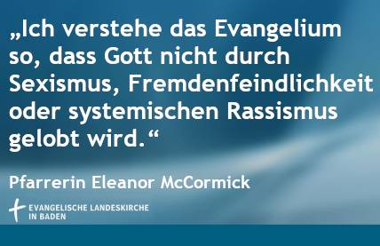 Karlsruhe, (03.11.2020). Die US-amerikanische Pfarrerin und ökumenische Mitarbeiterin der badischen Landeskirche, Eleanor McCormick, zeigt sich frustriert von der aktuellen US-Politik. Sie sei erschöpft von dem "beispiellosen Ausmaß an Uneinigkeit stiftender Rhetorik, an Angstmacherei und Hetze, an Rassismus und Sexismus, die ohne Unterbrechung aus dem Weißen Haus hervor strömt", schreibt die evangelische Theologin der United Church of Christ (UCC), die etwa eine Million Mitglieder in den USA hat, auf der Homepage der badischen Landeskirche.