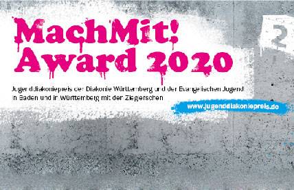 Stuttgart/Karlsruhe/Wilhelmsdorf, (27.02.2020). Bis zum 13. Juli 2020 können sich Jugendliche, die sich sozial in Baden-Württemberg engagieren, für den MachMit!Award bewerben. Es ist der Jugenddiakoniepreis der Diakonie und der Evangelischen Jugend in Württemberg und in Baden. Der jetzt zum 13. Mal ausgeschriebene Preis ist mit insgesamt 7.000 Euro dotiert und fördert das soziale Engagement von Jugendlichen und jungen Erwachsenen. Bestehende soziale Initiativen und engagierte Gruppen werden mit dem Preis gestärkt und bestätigt. Darüber hinaus gibt der Jugenddiakoniepreis Impulse für neue Initiativen im sozialen Engagement junger Menschen. Getragen und finanziell unterstützt wird der Jugenddiakoniepreis von der Diakonie Württemberg, dem Evangelischen Kinder- und Jugendwerk Baden, dem Evangelischen Jugendwerk in Württemberg, dem diakonischen Unternehmen Die Zieglerschen sowie dem Jugendradio bigFM.